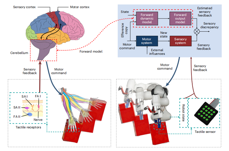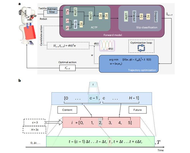 現(xiàn)有方法多依賴(lài)經(jīng)驗(yàn)性?shī)A持力調(diào)節(jié)或簡(jiǎn)化物理模型,僅適用于結(jié)構(gòu)化場(chǎng)景(如平面抓取),在動(dòng)態(tài)操作(如高速搬運(yùn)、易碎物體轉(zhuǎn)移)中失敗率高達(dá)34%。為此,我們提出仿生預(yù)測(cè)控制框架,通過(guò)融合神經(jīng)觸覺(jué)前向模型與模型預(yù)測(cè)控制,突破傳統(tǒng)滑移抑制的性能邊界。