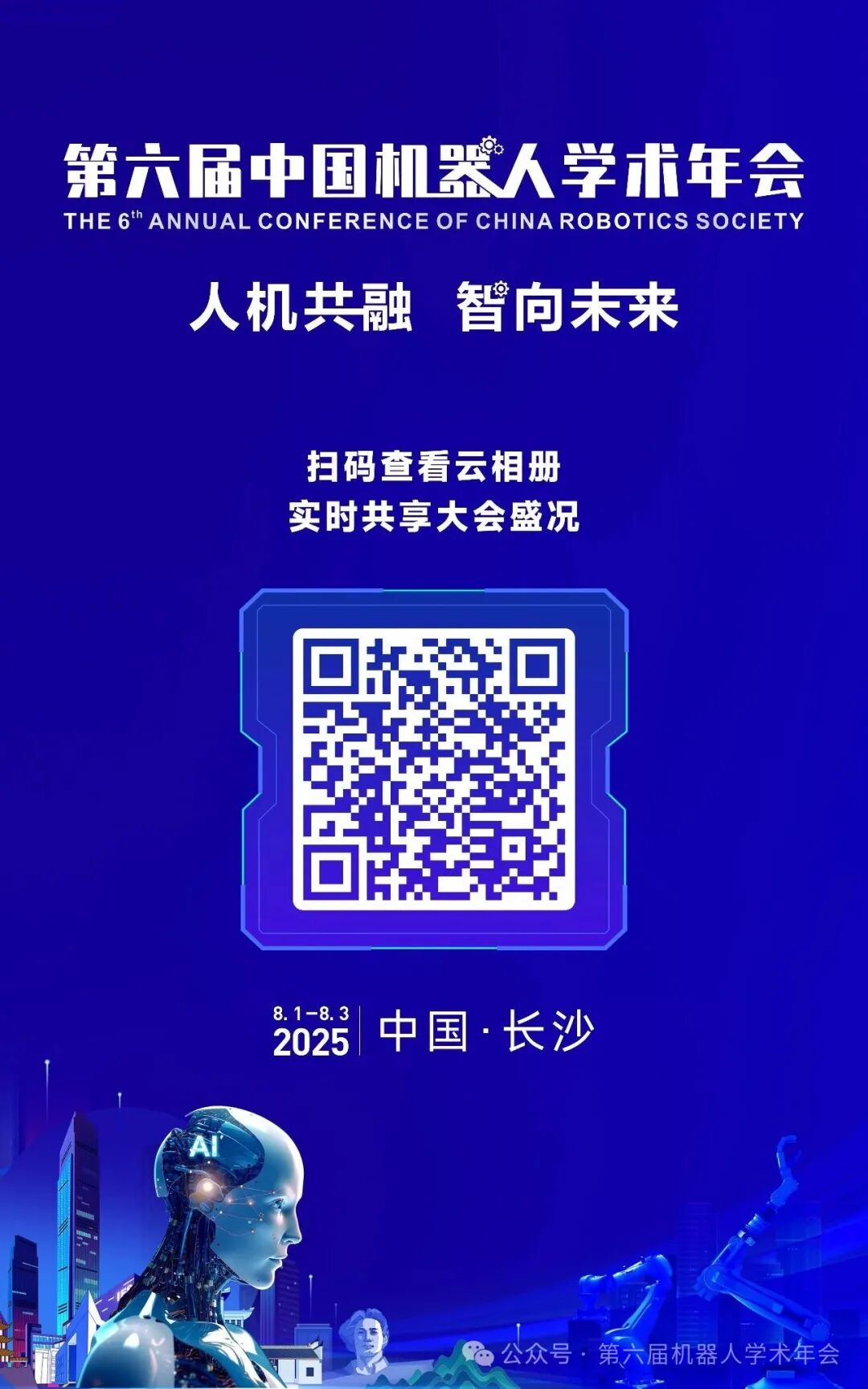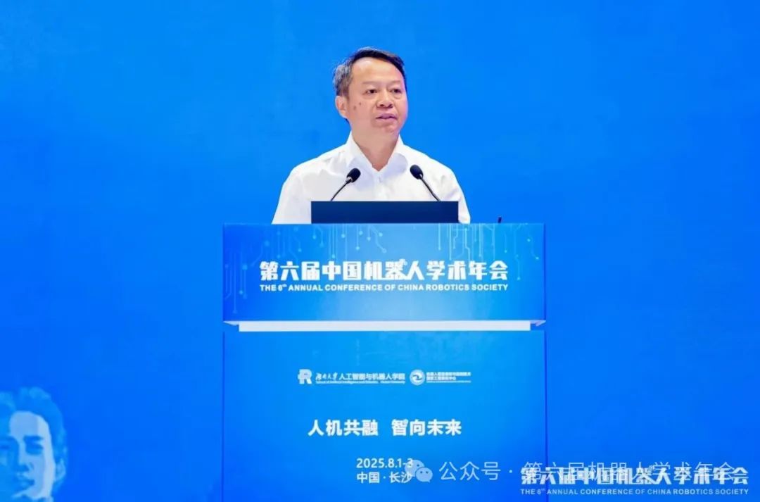 2025年8月1 - 3日,以“人機共融,智向未來”為主題的第六屆中國機器人學術年會(CCRS 2025)在長沙國際會議中心盛大舉行并圓滿落幕。本次年會匯聚了機器人與人工智能領域的院士、資深專家等200余人,吸引了來自全球的3000余名專家學者、企業代表參會,共同探討機器人技術前沿與產業應用前景,堪稱一場機器人領域的思想盛宴。本次年會由中國機械工程學會機器人分會、中國自動化學會機器人專業委員會、中國宇航學會機器人專業委員會等多家學術團體聯合主辦,岳麓山工業創新中心、機器人視覺感知與控制技術國家工程研究中心等單位共同承辦。