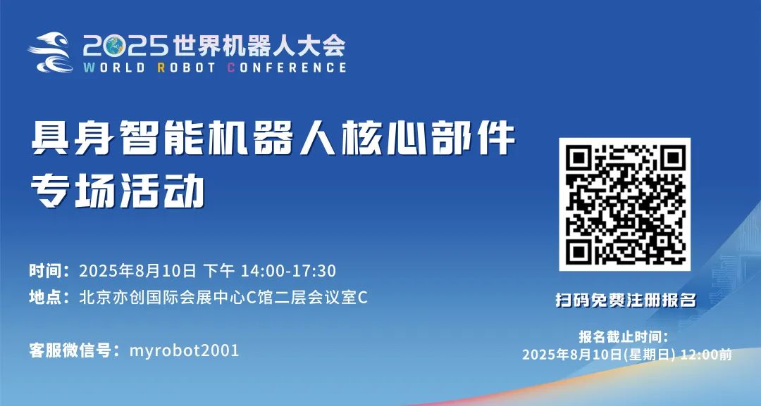 擬線下參會的嘉賓須于2025年8月10日(星期日) 12:00前掃描下方二維碼,選擇8月10日“具身智能機器人核心部件專場活動”并進行報名,大會報名采用實名認證,請確保個人信息填寫的真實性與完整性。