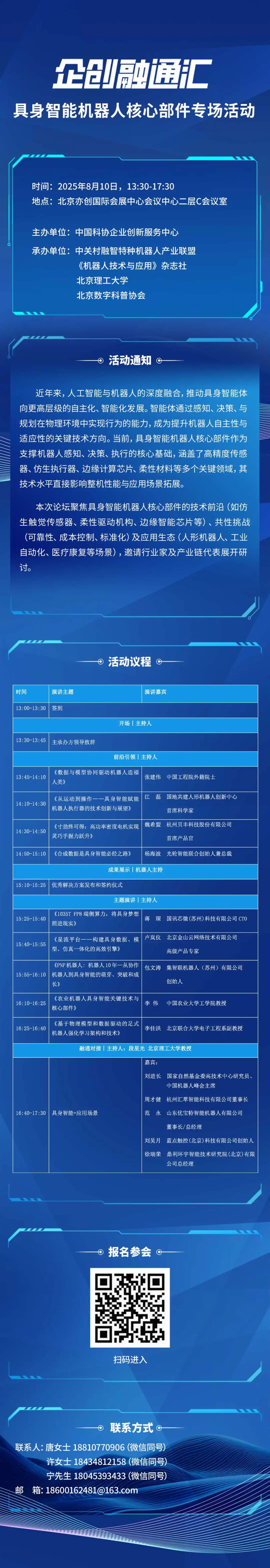 誠邀您在專場活動中深探技術內核,共同構建從創新研發到產業落地的完整生態閉環。期待您共赴這場機器人產業的科技盛宴!