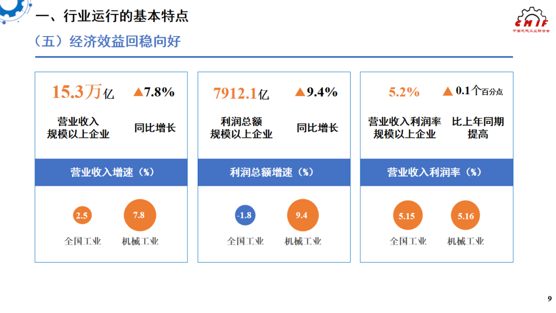 同時也要看到,宏觀政策和產(chǎn)業(yè)政策持續(xù)加碼加力。從中央經(jīng)濟工作會議到中央政治局會議,持續(xù)釋放利好于機械工業(yè)的政策和措施,宏觀政策更加積極有為、持續(xù)發(fā)力、適時加力,“兩新”政策擴圍提質(zhì)、高質(zhì)量推動“兩重”建設(shè),加快政府債券發(fā)行使用,加力支持科技創(chuàng)新、提振消費、小微企業(yè)、穩(wěn)定外貿(mào)。近期工業(yè)和信息化部即將印發(fā)機械、汽車、電力裝備等行業(yè)穩(wěn)增長工作方案,著力提升優(yōu)質(zhì)供給能力,優(yōu)化行業(yè)發(fā)展環(huán)境,推動行業(yè)實現(xiàn)質(zhì)的有效提升和量的合理增長。客觀分析,保障機械工業(yè)長期向好的支撐條件和平穩(wěn)增長的基本趨勢沒有改變,機械工業(yè)基礎(chǔ)穩(wěn)、韌性強、潛能大的優(yōu)勢沒有改變,行業(yè)發(fā)展的內(nèi)生動力依然強勁,機械工業(yè)實現(xiàn)高質(zhì)量發(fā)展的確定性不斷增強。