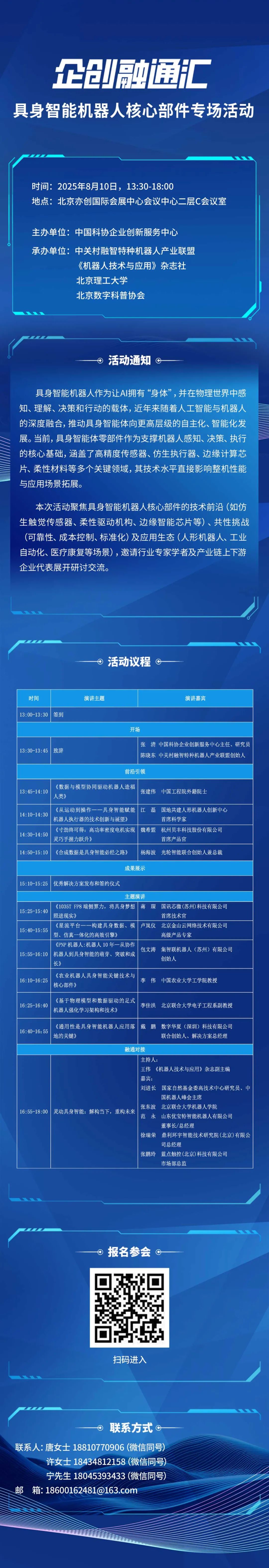 如需咨詢具身智能機(jī)器人核心部件專場活動(dòng)的其他信息,請(qǐng)與論壇秘書組聯(lián)系。