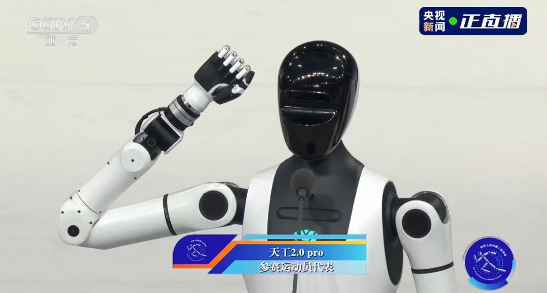 參賽選手宣誓環(huán)節(jié),全球首個機器人運動員代表天工2.0 pro莊嚴宣誓。