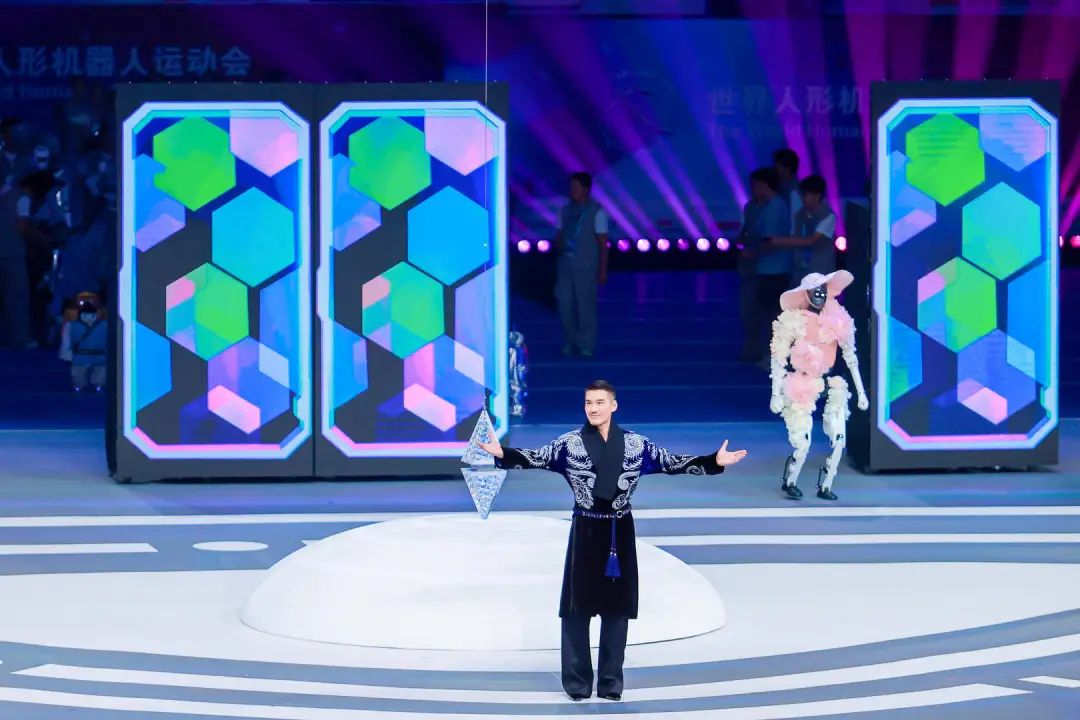 開幕式上,人形機器人街舞團首次亮相,演藝明星劉雨昕和機器人同臺炫舞,共同演繹《歡迎來到碳基生命的世界》。
