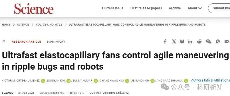 Science超快彈性毛細折疊扇的敏捷仿生微型機器人