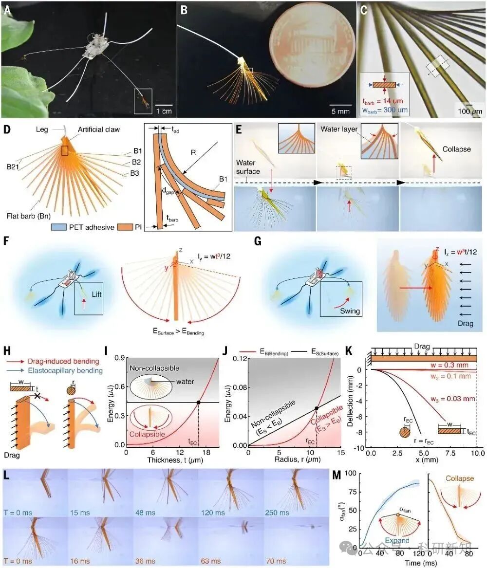 基于這種形態功能結構啟發,文中研制出一種1毫克級彈性毛細扇片,并將其集成到昆蟲尺度機器人中。昆蟲與機器人的實驗共同證實:自變形扇片能顯著提升推力、制動性與機動性。本研究揭示了扇片微觀結構與受控界面推進之間的內在聯系,為敏捷型水生微型機器人的緊湊化彈性毛細驅動器建立了設計原則。該技術方法為水面巡檢、環境監測、搜救和水陸兩棲等場景的微型水上機器人設計提供了新思路。